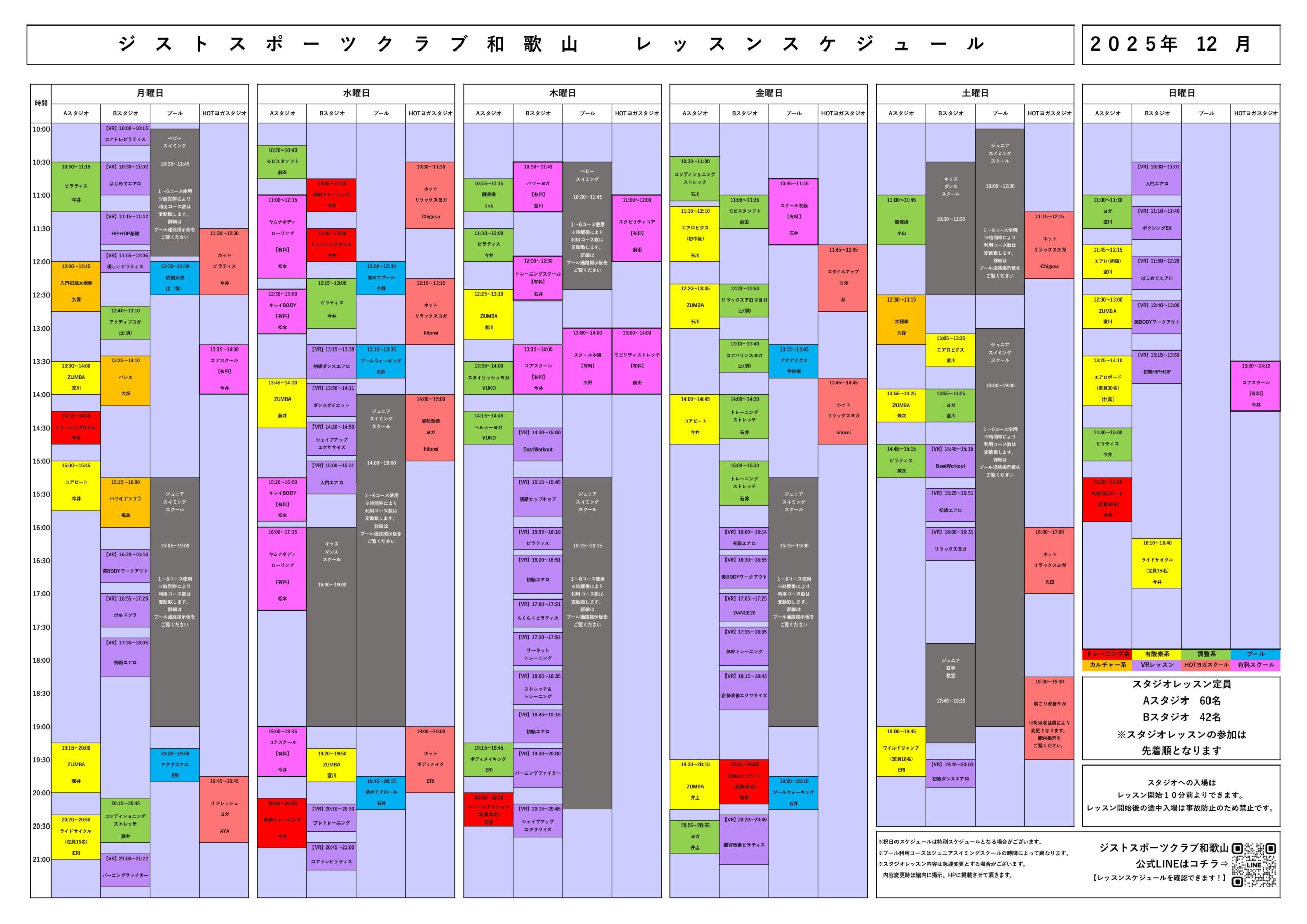日頃より、ジストスポーツクラブ和歌山をご利用いただきありがとうございます。 年末年始の営業スケジュールを以下の通りご案内いたします。