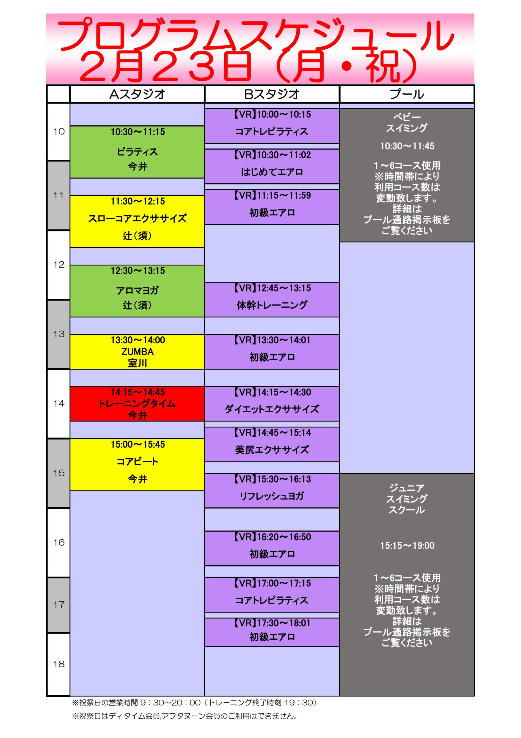 2月23日(月祝)のスタジオプログラム