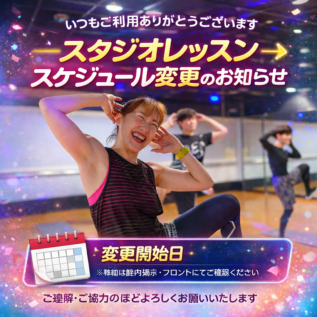 スタジオプログラム&ホットヨガ担当変更のお知らせ 4/ 9(木) 19:15~19:45 ボディメイキング 変更 ERIアニメーター⇒矢田アニメーター 4/ 11(土) 19:00~19:4 […]