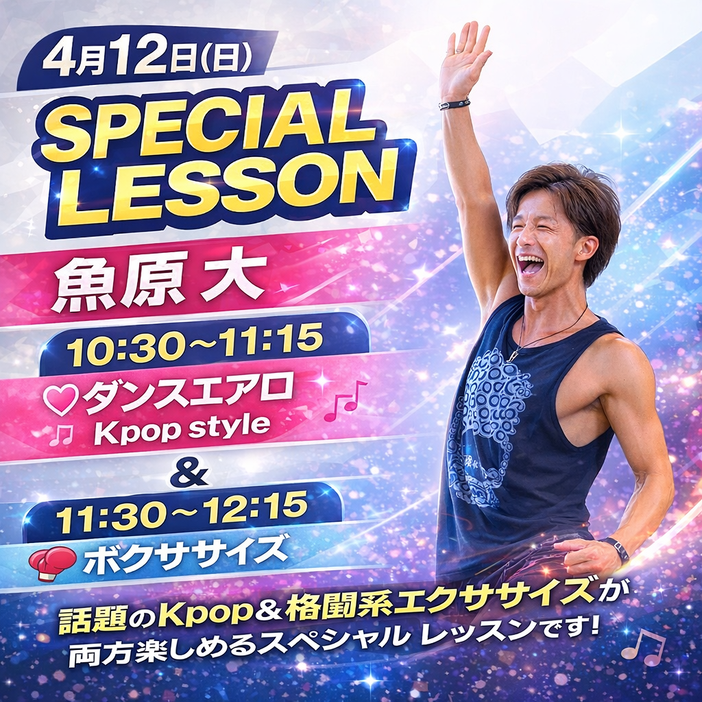 関西を中心に活躍中の有名インストラクター魚原さんと脇坂さんの2名がジストスポーツクラブ和歌山に登場!! 魚原さんの構成は有酸素系2種のあと調整系とバランスよく運動出来ます!! 脇坂さんの構成は有酸素系が3種 […]