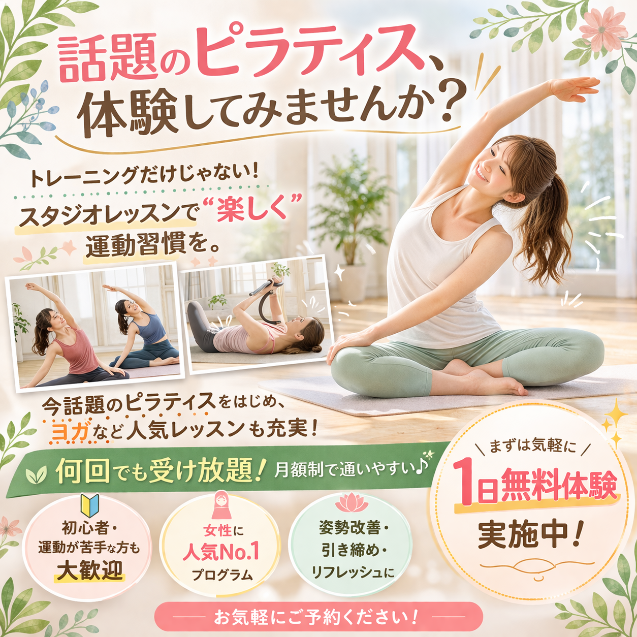 【和歌山で人気】女性におすすめのピラティス・ヨガ1日無料体験実施中
