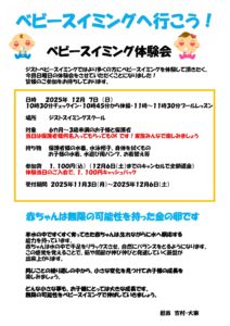 ジストのベビースイミングがこの度、日曜日に体験会を行います✨