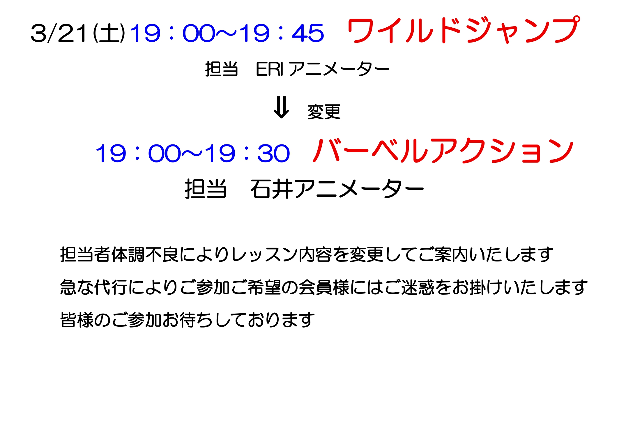スタジオプログラム変更のご案内
