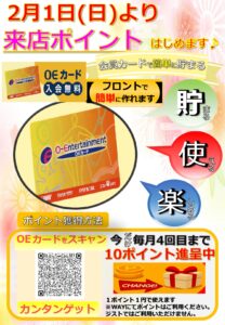 2月1日(日)よりOEカードにて来店ポイントが貯められるようになります!